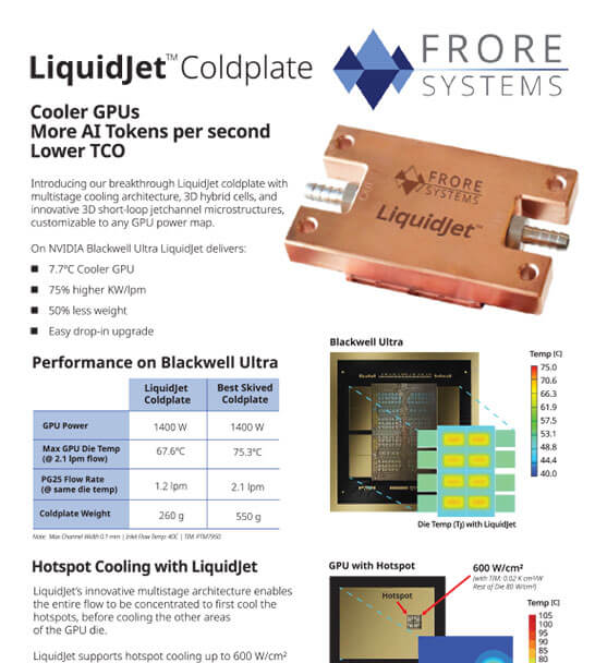 Contact Frore Systems today to discover how LiquidJet can transform and futureproof your operations with an easy drop-in upgrade to your data center racks.