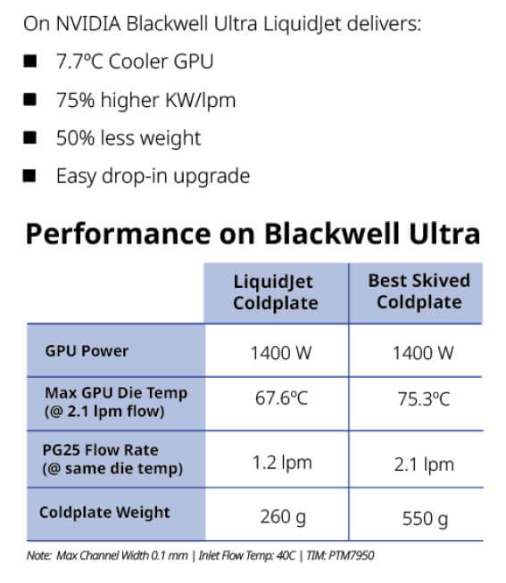 LiquidJet 采⽤了⼀种从根本上截然不同的散热思路,专为现代AI 芯⽚的特性与现代数据中⼼的经济模型量⾝打造。