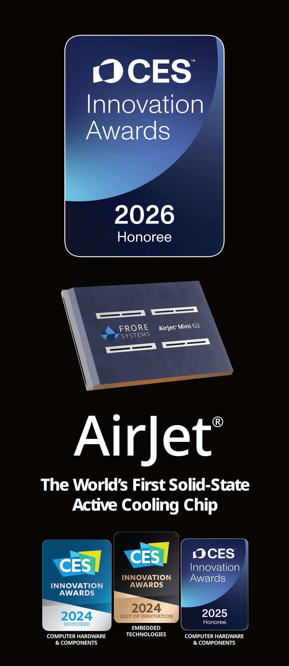 此外,AirJet®Mini G2 还为 Frore Systems 赢得了连续第三座 CES 创新大奖(CES Innovation Award),再次彰显了行业对固态主动散热技术的高度认可,该技术旨在消除下一代 AI 系统的散热瓶颈。
