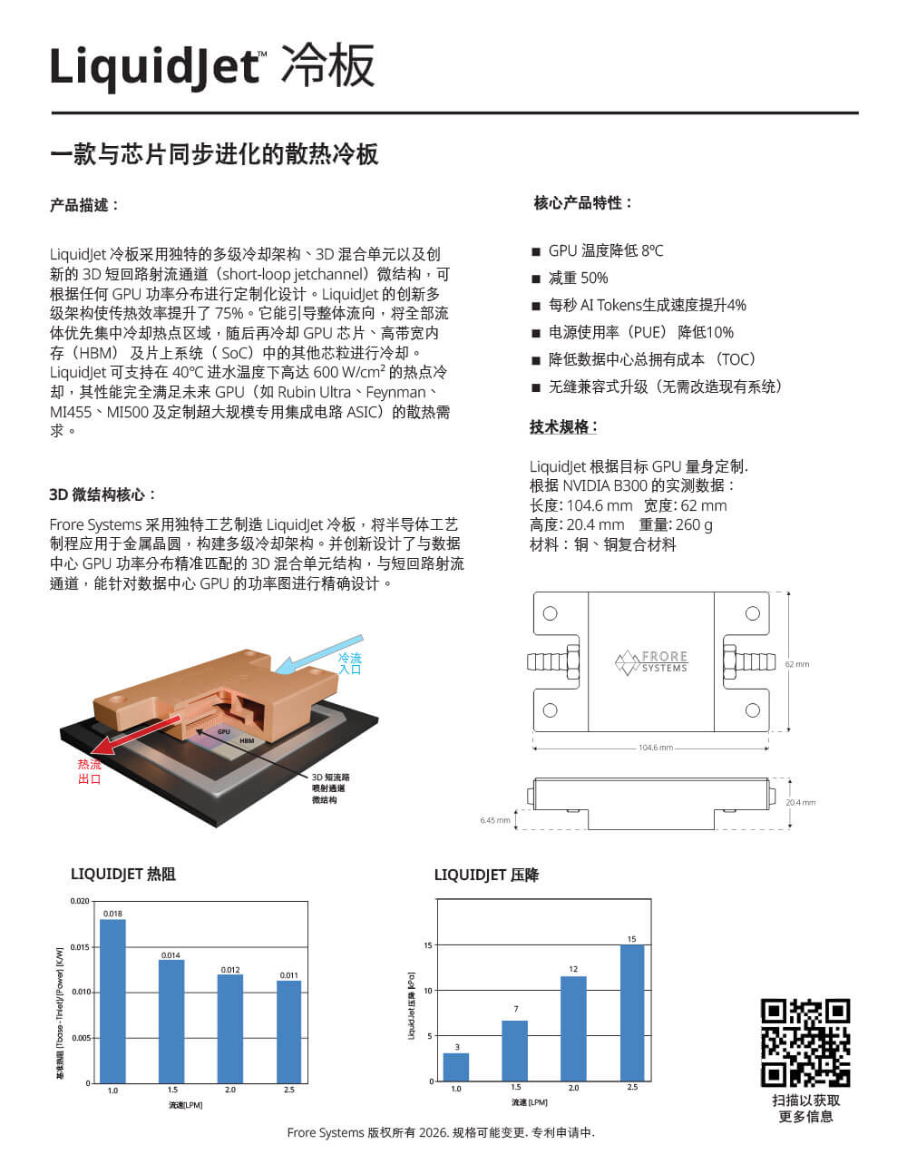 LiquidJet™:用于数据中心的多级 3D 短回路喷射通道液冷冷板,可提升 GPU 性能、优化 PUE 并降低总体拥有成本(TCO)