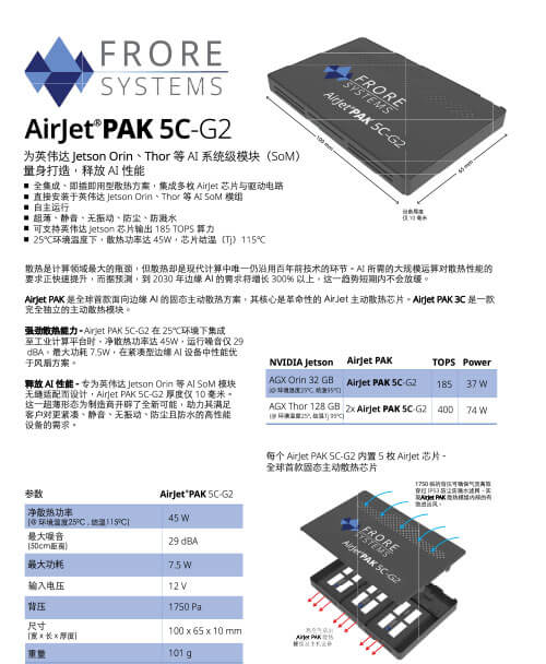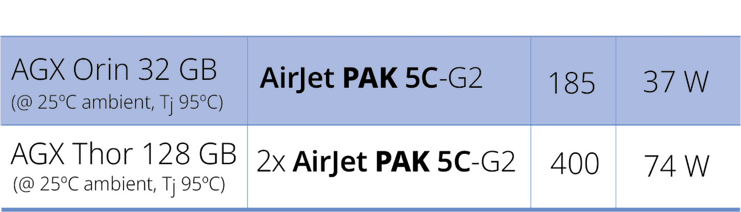 AirJet PAK 5C-G2 is designed to support up to 185 TOPS and remove up to 25W of heat.