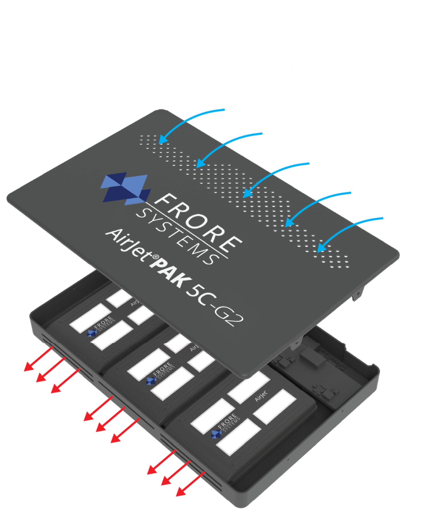 The AirJet PAK generates 1750 Pascals of back pressure, ensuring effective air flow into and out of the cartridge, even when the air vents are covered with IP53 dust proof filters.