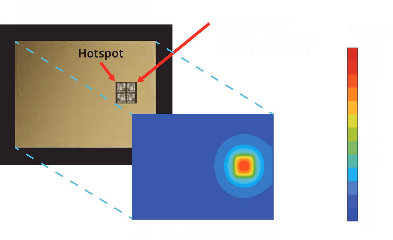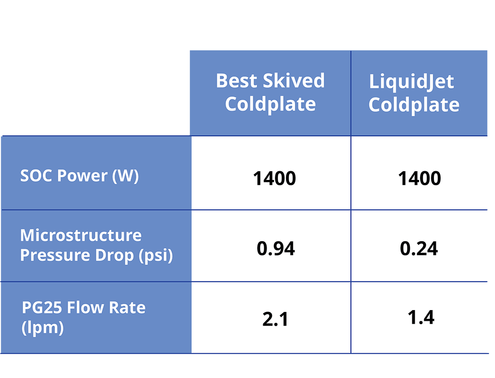 50% higher KW/LPM and supporting 600 W/cm2 hotspot cooling @ 40C inlet temperature